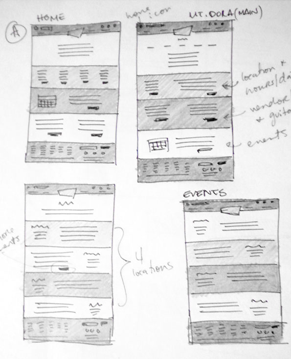 A couple quick ideas for the Renninger’s redesign. Each location page (Mt. Dora, Adamstown, etc.) is like a mini-site with it’s own navigation considerations. So there’s some problem solving required to figure out how to display that.